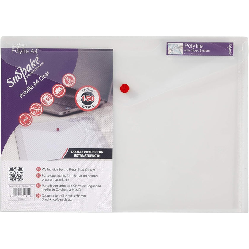A4 Snopake Polyfile Envelope Button Folder - Clear