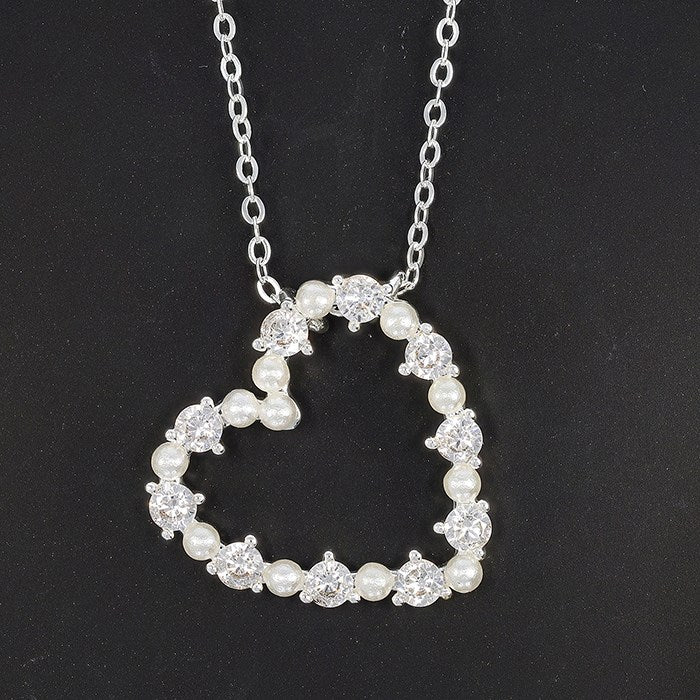 Equilibrium Silver Plated Necklace - Pearl Sparkle Heart